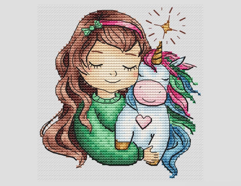 Girl Hugs Unicorn Cross Stitch Pattern Unicorn Love Cross Stitch Gift For Girl Cross Stitch Nursery Decor Unicorn Pattern Baby Girl Chart