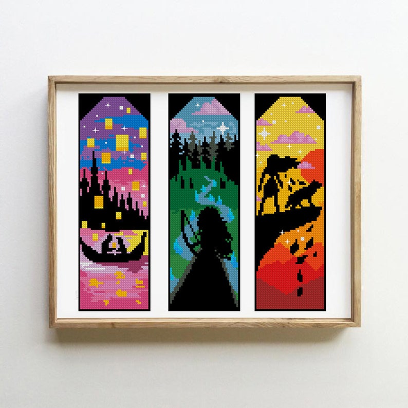 Set Of 3 Princesses Bookmarks Cross Stitch Patterns Rapunzel Silhouette Galaxy Cross Stitch Pattern Digital Format Pdf