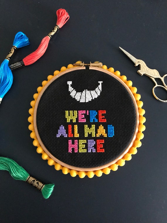 Alice In Wonderland Cross Stitch Kit Cheshire Cat Were All Mad Here Xstitch Cross Stitch Pattern Modern Cross Stitch Christmas Gift