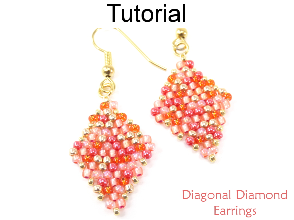 Beading Tutorial Pattern Beaded Diamond Earrings Diagonal Peyote Stitch Simple Bead Patterns Diagonal Diamond Earrings 19040