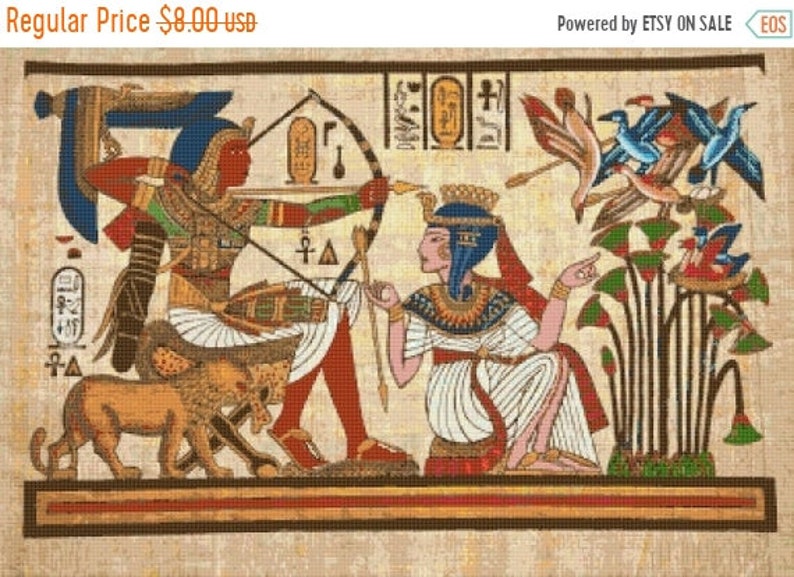 Egyptian Cross Stitch Pattern Egyptian Pattern Hieroglyphs Pattern Papyrus 386 X 257 Stitches Instant Download B1542