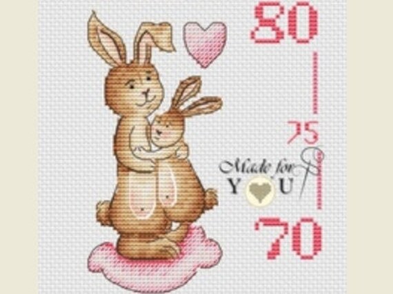 Bunny Growth Chart Counted Cross Stitch Pattern Pdf Baby Girl Birth Announcement Rabbit Height Chart Embroidery