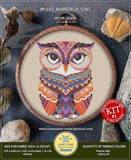 Amazon Com Mandala Owl K543 Embroidery Cross Stitch Kit
