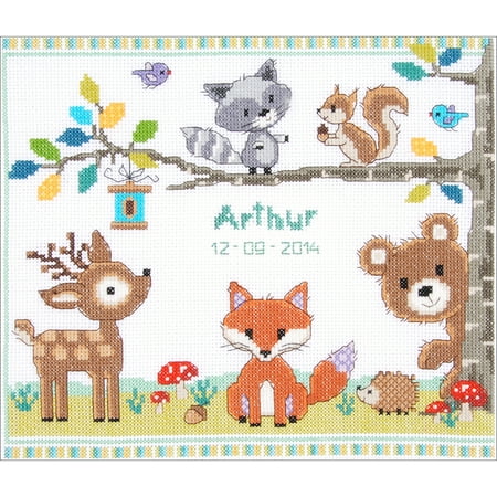 Forest Animals Birth Record On Aida Counted Cross Stitch Kit 11 2 X 9 6 14 Count