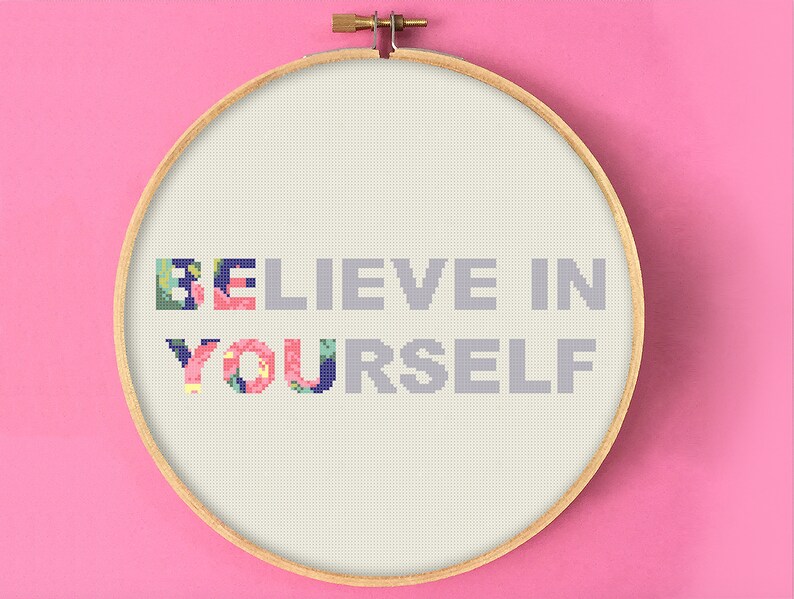 Believe In Yourself Cross Stitch Pattern Colorful Flower Motivational Quote Embroidery Easy Xstitch Compliment Feminism Cross Stitch