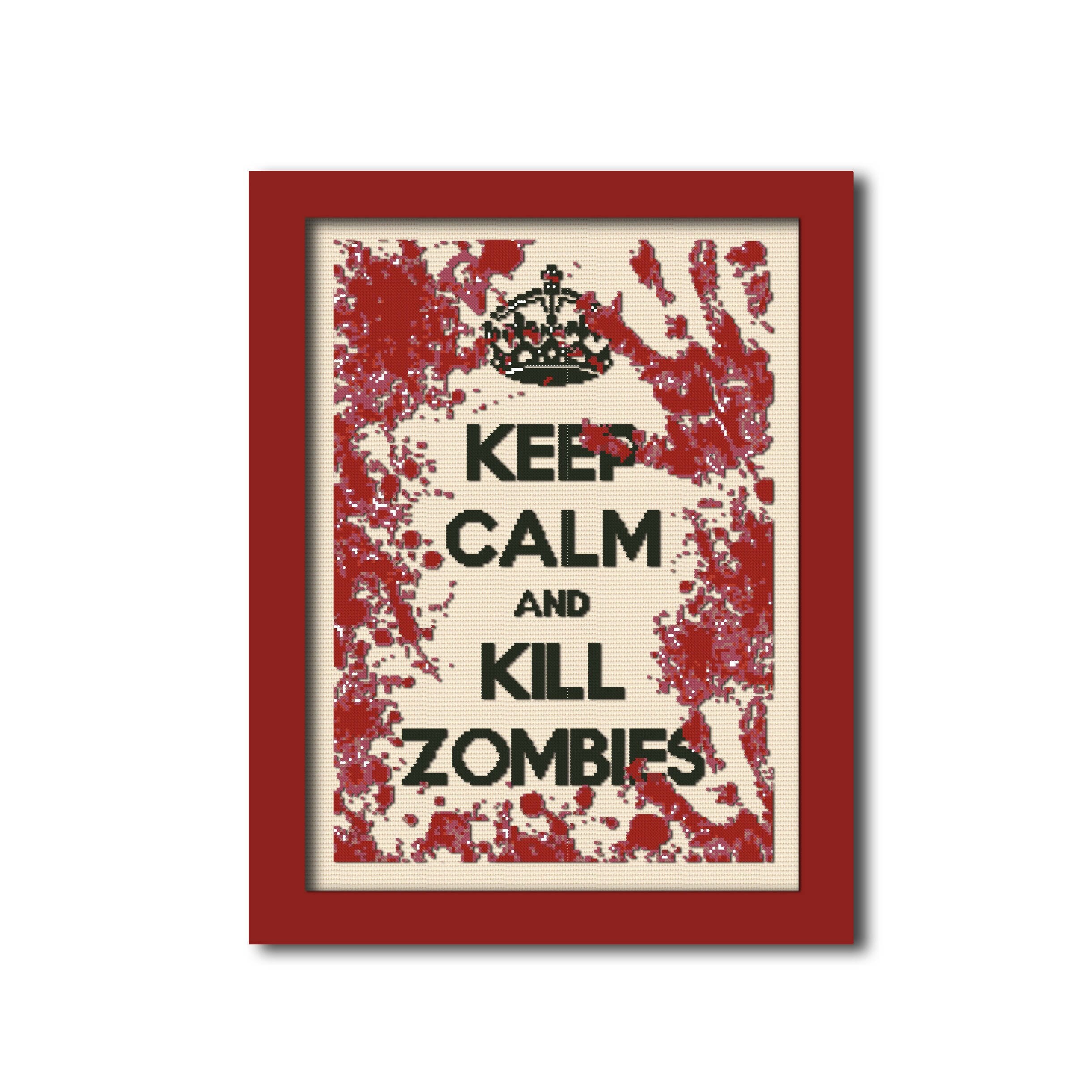 Keep Calm Cross Stitch Pattern Kill Zombies Pattern Easy Pattern Boy Gift Modern Xstitch Comics Printable Pattern Pdf Download Blood