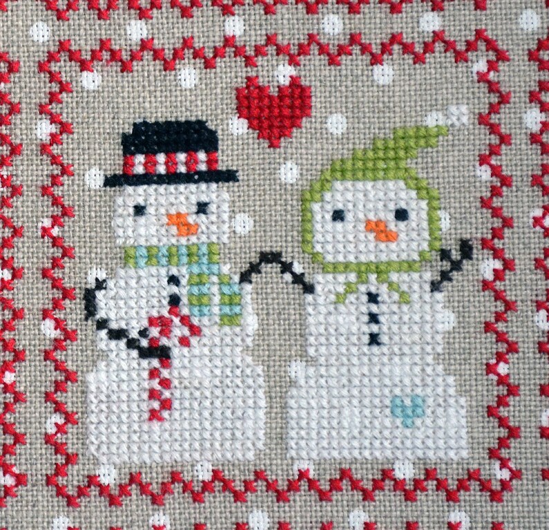 Snowy 9 Patch Part 5 Cross Stitch Snowman Series Annie Beez Folk Art Part Three Snowman Hearts Love Ornament Series