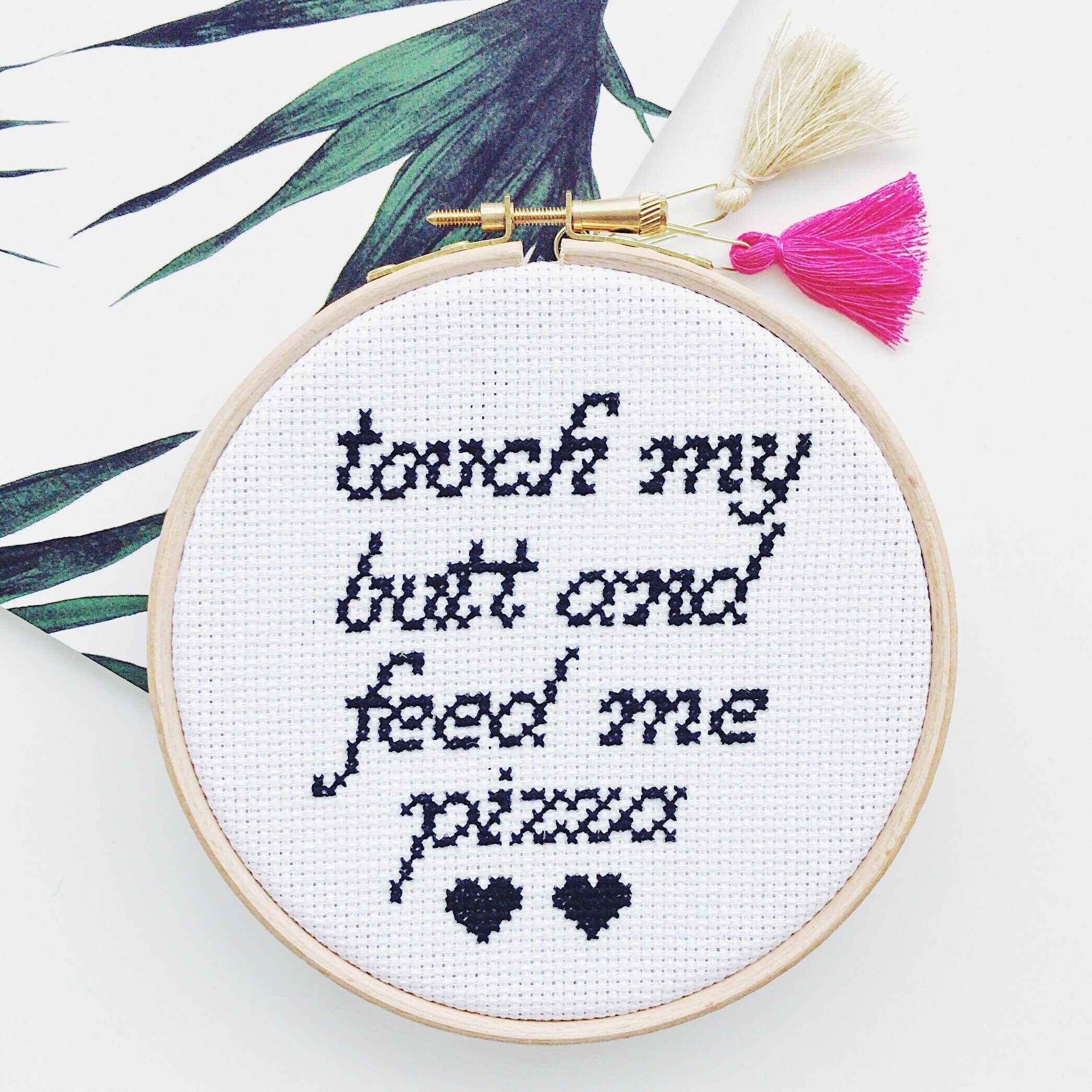 Touch My Butt And Feed Me Pizza Completed Cross Stitch