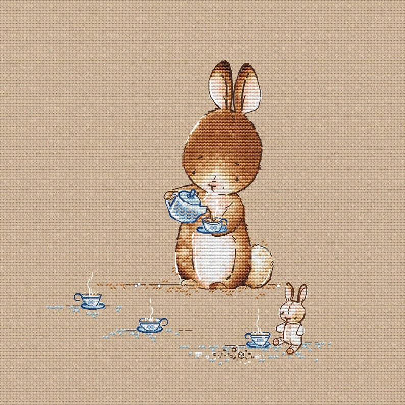 Tea Time Bunny Cross Stitch Pattern Rabbit With Teapot Instant Download Playing With Bunny Cross Stitch Bunny And Tea Cups Pattern
