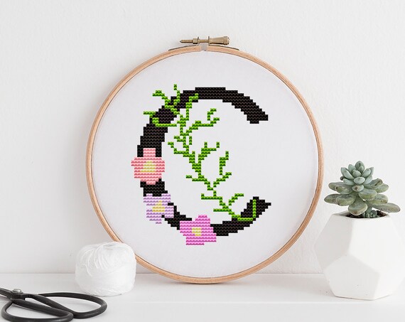 Flowers Spring Monogram C Cross Stitch Pattern Letter C Alphabet Personalized Wedding Birth Announcement 265