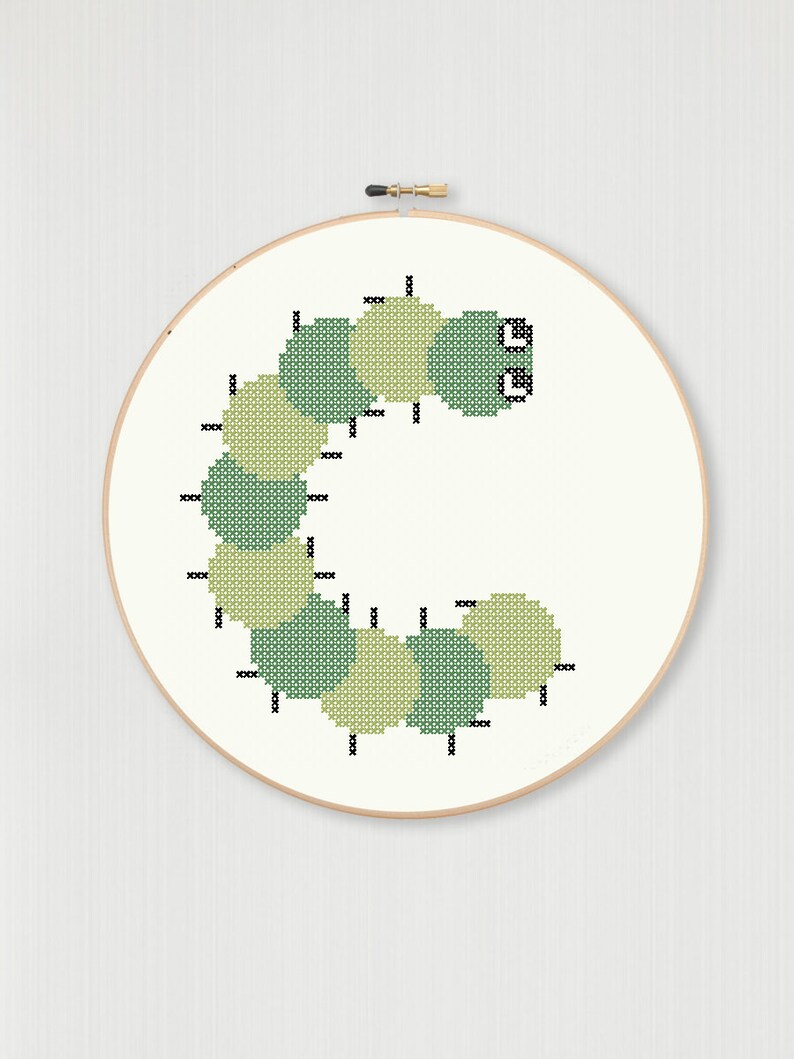 Cross Stitch Letter C Caterpillar Pattern Instant Digital Download