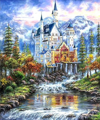 Fipart 5d Diy Diamond Painting Cross Stitch Craft Kit Wall Stickers For Living Room Decoration 16x12inch 40x30cm Castle